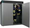 Trockenschrank Der DBF20 wurde speziell für Feuerwehren und die Trocknung schwerer Overalls entwickelt. Es handelt sich hierbei um ein effizientes und schonendes Trocknungsverfahren. Der Trockner hat eine Kapazität für 6 größere Overalls. Ein großes Display zeigt Symbole und Text an. Ein System trocknet die Overalls von außen, das andere System trocknet die Overalls von innen. Ein Programm für zeitgesteuerte Trocknung und drei automatische Programme mit dem Humidity-Tracking-System (HTS). HTS ist unser neues System, das die Luftfeuchtigkeit jede Sekunde misst, um zu bestimmen, wann genau die Textilien trocken sind. Die Programme können auch für andere Kleidungsstücke und Berufskleidung eingesetzt werden.