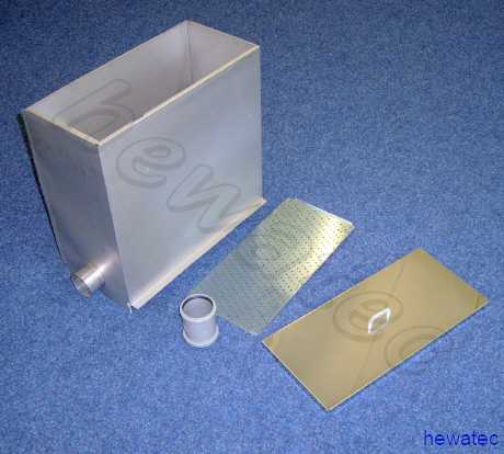FLUSENKASTEN gefertigt aus rostfreiem Edelstahl, herausnehmbarem Sieb und Deckel mit Griff